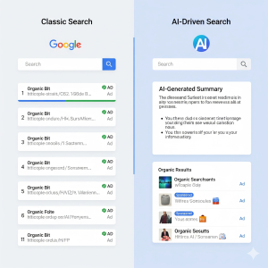 AI-driven SERPs present synthesized answers to complex queries, often featuring a visual or narrative block at the top. When an AI response aligns with commercial intent, ads can show up within or beside that block. The outcome is more impressions and opportunities for discovery, but fewer guaranteed clicks to websites. There is now a greater need for clear, answer-focused creative.